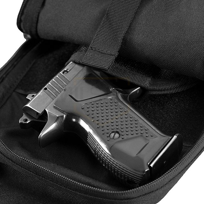 Le sac à bandoulière tactique Chest Sling Pack est conçu pour un transport dissimulé, un étui réglable est installé à l'intérieur du sac. Grâce aux sangles spéciales, le sac peut être ouvert facilement et rapidement afin d'accéder à l'arme. Cinq compartiments supplémentaires pour ranger les effets personnels permettent de décharger les poches de pantalons, chemises, vestes ou shorts.