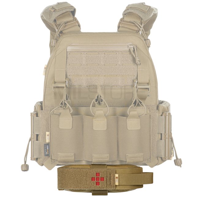 M-Tac a développé et lancé une poche à garrot fermé avec rabat. La principale différence entre ce modèle et les modèles précédents est qu’il est fermé. Cette conception garantit une protection fiable du contenu contre la saleté et la poussière. Il y a une boucle (en sangle) sur le devant et en tirant fermement vous pouvez ouvrir facilement et rapidement la poche pour accéder au garrot. L'ouverture du sol peut être réglée à l'aide d'une serrure spéciale. En position fermée, ce verrou est fixé au panneau Velcro, le bas ne peut donc pas être ouvert complètement et le garrot n'est accessible que par le haut. Cependant, lorsque le verrou est retiré du panneau Velcro et placé à l'intérieur, la base s'ouvre complètement, ce qui facilite le retrait du contenu.