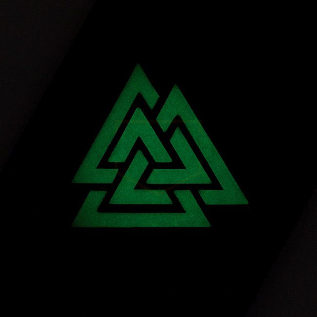 M-Tac Valknut Découpe Laser Patch - Phosphorescent. Devant : Nylon Cordura 500D, Arrière : surface à crochets, 80 x 50 mm. Un patch unique qui brille dans le noir.