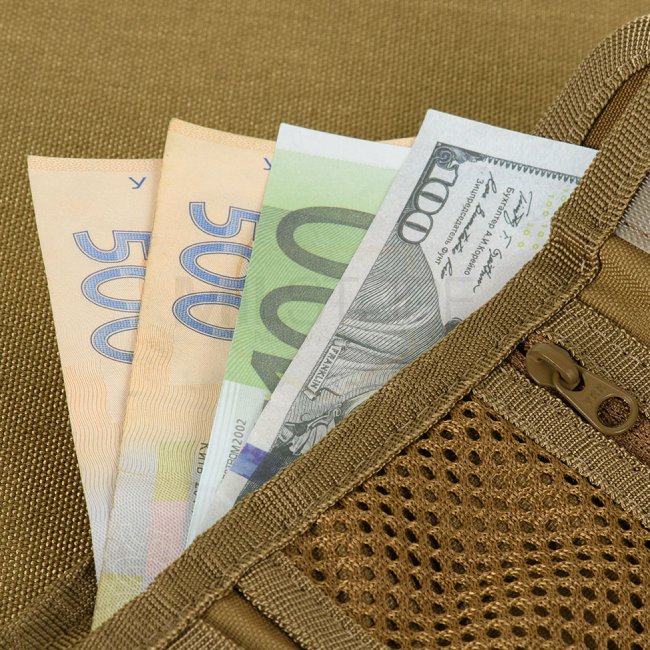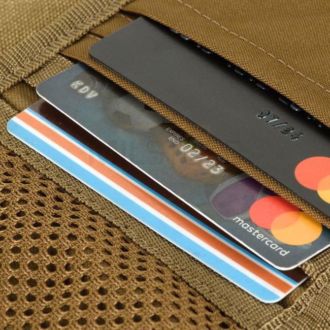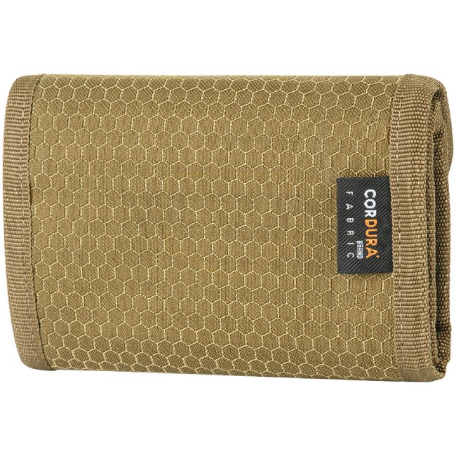 Le portefeuille Velcro M-Tac Elite Gen.II Hex - Coyote est un portefeuille robuste fabriqué en tissu Cordura et Oxford. Il comporte plusieurs compartiments pour de l'argent, des cartes et des documents, y compris une poche zippée pour la monnaie. Panneau