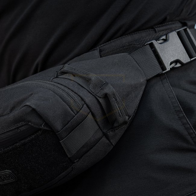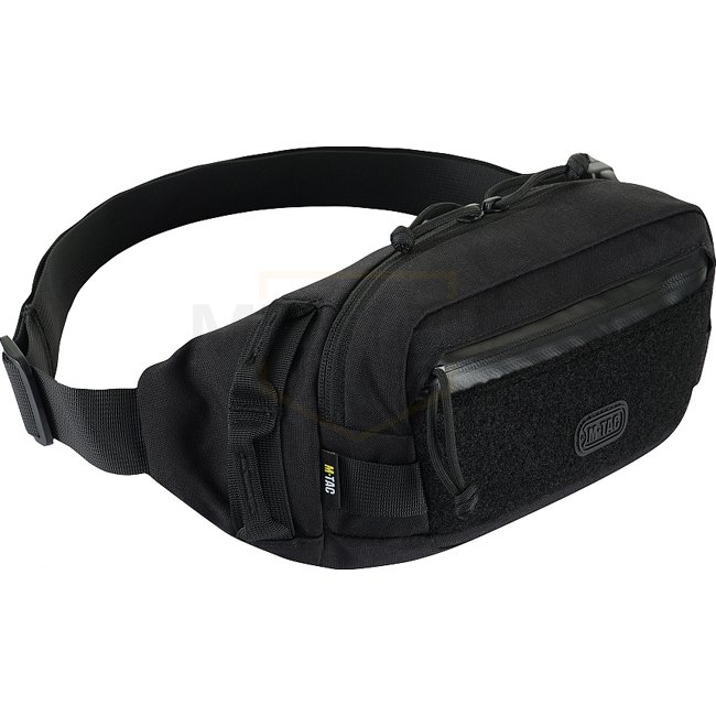 Sac ceinture M-Tac Gen.II - Noir : Petit sac de ville avec options de rangement polyvalentes, panneau avant élégant en Velcro, paroi arrière confortable en maille 3D, sangle en toile de nylon ajustable. Matériau : Polyester.