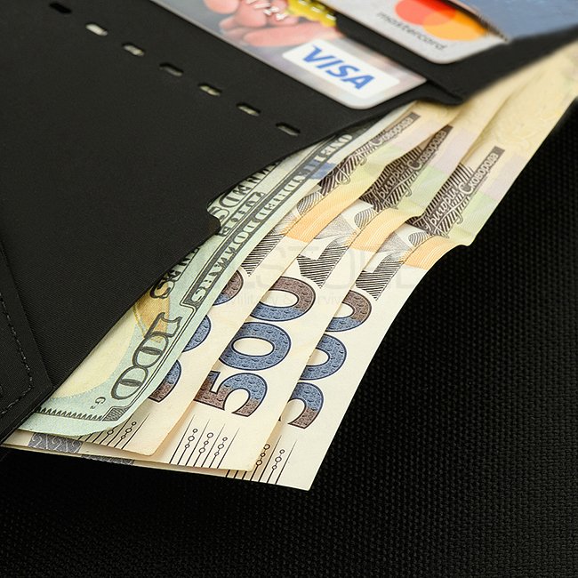 Le portefeuille compact et élégant Wallet Slim Elite est conçu pour stocker de l'argent, des cartes et des cartes de visite. Ce portefeuille est fabriqué à partir d'un composite polymère moderne, qui présente une résistance à l'abrasion, une résistance et une durabilité exceptionnelles. Ce modèle dispose d'un compartiment pour les billets papier, de 6 fentes pour les cartes plastiques et d'un rivet en laiton siglé. Toujours dans cette génération, les concepteurs ont ajouté un compartiment pour la petite monnaie. Cet accessoire compact sera intéressant pour ceux qui apprécient la commodité et la praticité. En raison de sa taille, il se glissera facilement dans votre poche.