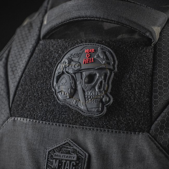 M-Tac War is Hell Patch en Caoutchouc 3D - Noir, fabriqué en caoutchouc durable avec une surface arrière à crochets, dimensions 60x70mm.