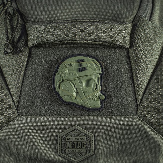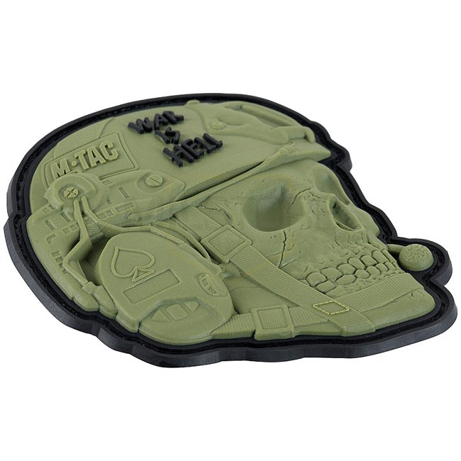 M-Tac War is Hell Patch en caoutchouc 3D - Olive, dimensions 60x70mm, fabriqué en caoutchouc avec surface à crochet