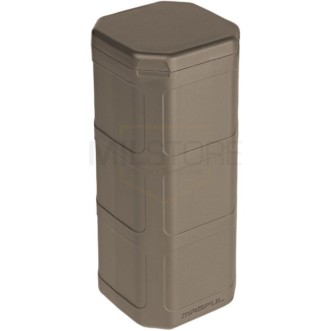Le Magpul DAKA Can en Dark Earth est une solution de stockage en polymère durable, ne pesant que 110g et ayant des dimensions externes de 162.6 x 63.5 x 68.6mm.