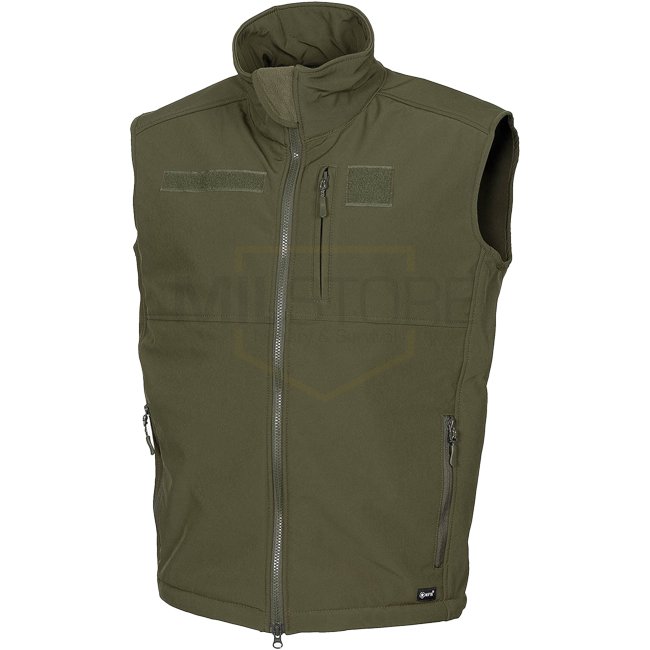 Restez protégé contre le vent et la pluie avec le gilet soft shell MFH Allround en olive taille XL. Il dispose d'une fermeture éclair frontale à 2 voies avec protège-menton, de multiples poches avec fermetures éclair, de panneaux en velcro, d'une taille a