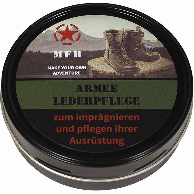 Crème à chaussure militaire de haute qualité MFH dans une boîte de 150 ml. Convient à tous les types de cuir, y compris les membranes respirantes. Imperméable et offre un entretien optimal pour tous les types de chaussures.