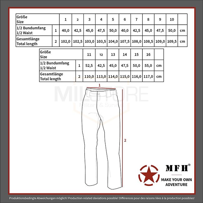 Pantalons de champ BW MFH en noir, taille 14. Design classique de style militaire avec 2 poches sur les jambes, 2 poches sur le pantalon et une fermeture éclair à l'avant. Comprend une poche à la taille avec un bouton de fermeture, des passants de ceintur