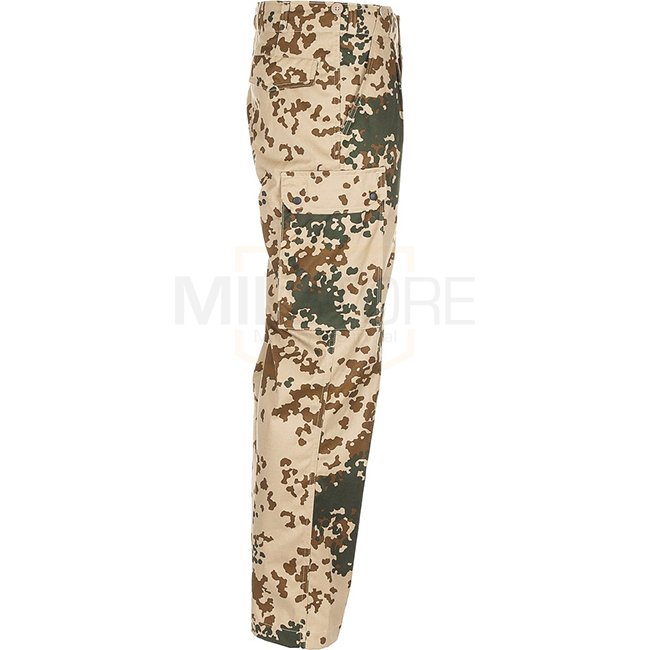 Pantalons de champ MFH BW en design BW Tropentarn. 2 poches à jambe, 2 poches sur le pantalon, fermeture éclair à l'avant et 1 poche à la taille avec fermeture à bouton. Fabriqué selon les normes militaires allemandes. Matériau : 65 % coton, 35 % polyeste