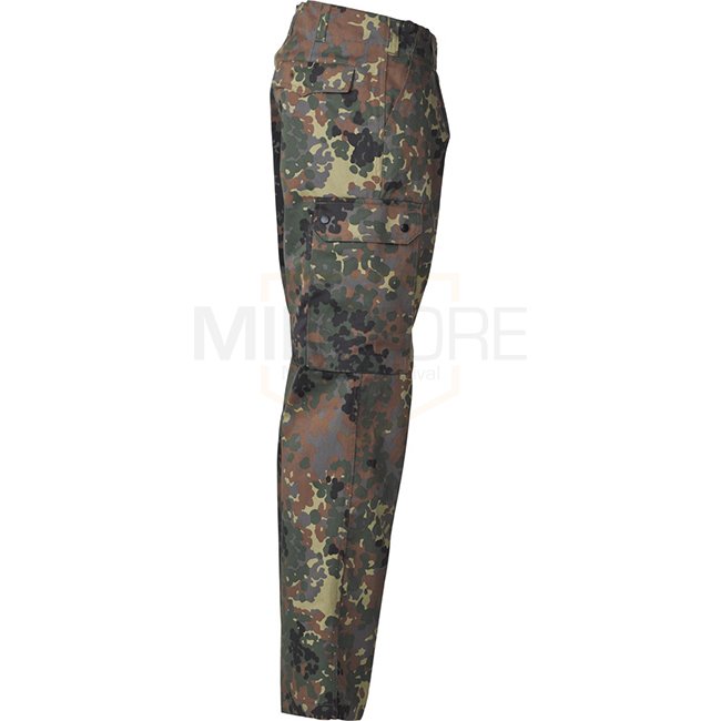 Pantalon de champ MFH BW - Flecktarn - 10 - Pantalon de spécifications militaires allemandes avec 2 poches pour les jambes, 2 poches pour pantalon, fermeture éclair à l'avant et poche à la hanche. Fabriqué à 65 % en coton, 35 % en polyester.