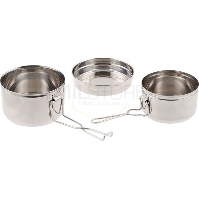 Kit de cuisine MFH CZ : Fabriqué en République tchèque, pièces empilables, 1 grande casserole avec couvercle, 1 petite casserole, poignées pliables, 100 % acier inoxydable.