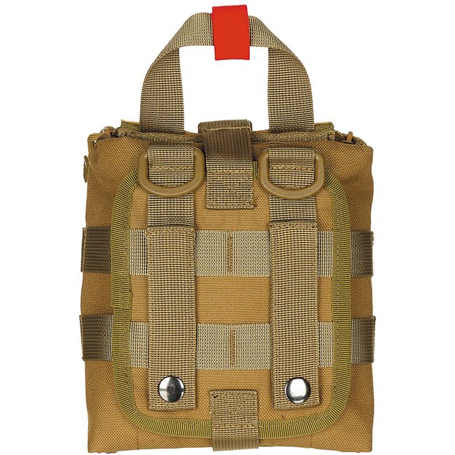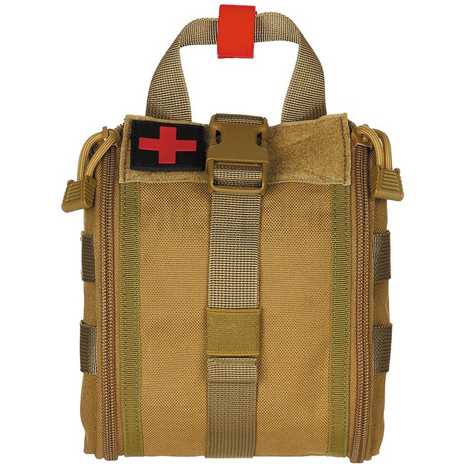 MFH Petite trousse de premiers secours MOLLE - Coyote est une trousse de premiers secours polyvalente conçue pour les aventures en plein air. Elle dispose d'une plaque de transport Molle détachable avec velcro, d'anneaux en D, de boucles de fixation Molle