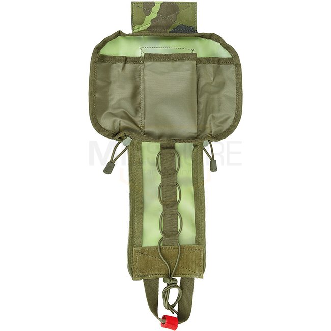 MFH Trousse de premiers secours Petite MOLLE - M95 CZ Camo. Plaque porte-moule détachable avec velcro et 2 anneaux en D. Sangle de sécurité ajustable, rabat avant avec velcro et poignée de transport. Divers compartiments et boucles en caoutchouc à l'intér
