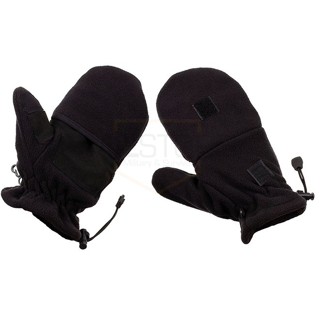 Gants en Fleece MFH avec Boucles de Tirage - Noir - 2XL : Capuchon de doigt pliable avec velcro, renforcé sur les paumes et les pouces, cordon élastique avec bloque-cordon au poignet. 100 % Polyester.