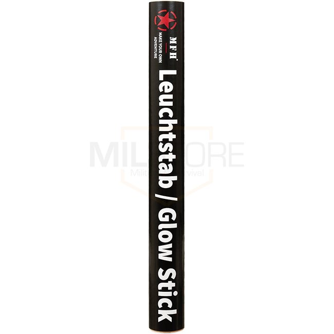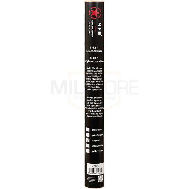 MFH Glow Stick 35cm en rouge, version plus grande de l'article n° : 26014, activation par flexion, applications polyvalentes comme lumière d'urgence ou de signalisation, marquage de chemin, brille sous l'eau, livré avec œillet de suspension, dragonne, boî