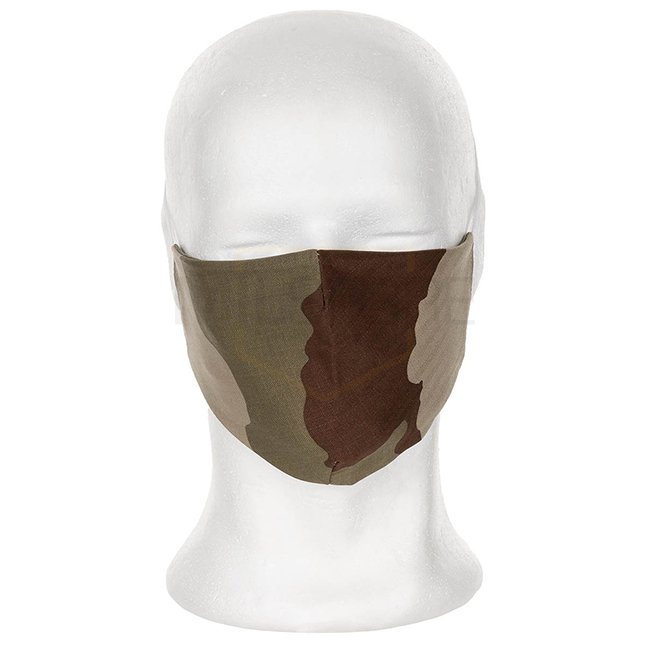 Masque MFH pratique et stylé en design désert de 3 couleurs, fabriqué à partir de 65 % de polyester et 35 % de coton. Pas un produit médical ou un masque de protection selon la réglementation de l'UE ; non adapté aux établissements de santé ou au personne