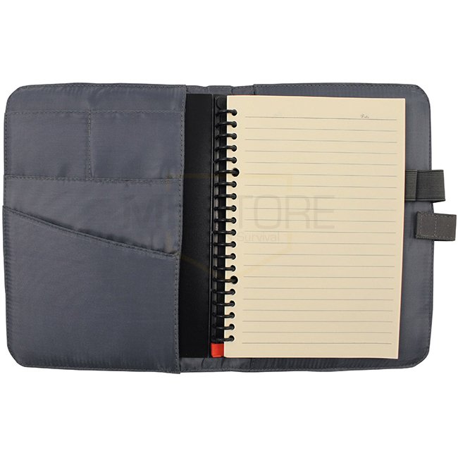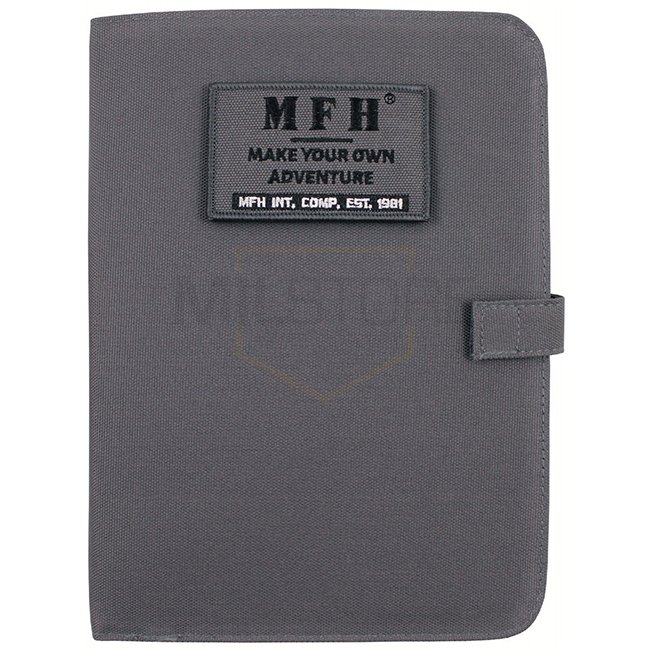 Bloc-notes MFH A5 compact et polyvalent dans une couleur Gris élégante. Comprend un patch "MFH" détachable, plusieurs compartiments, des porte-stylos et un classeur à anneaux amovible. Idéal pour organiser des notes et des documents en déplacement. Fabriq