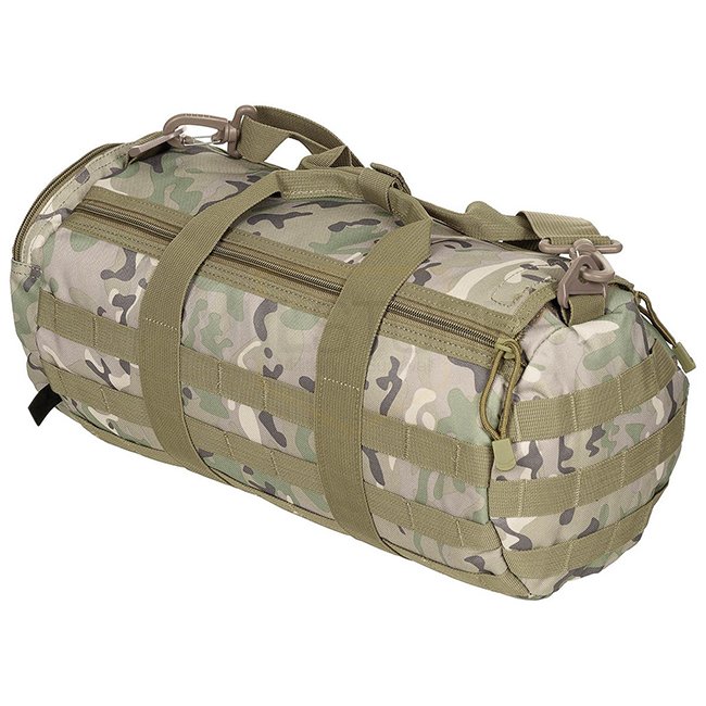 Sac d'opération MFH Rond - Camouflage d'opération - Bandoulière détachable et ajustable. 2 poignées de transport avec bouton pression. Couvercle avec fermeture éclair double et velcro. Boucles d'attache Molle sur 2 côtés. Détails des compartiments incluen