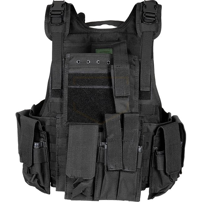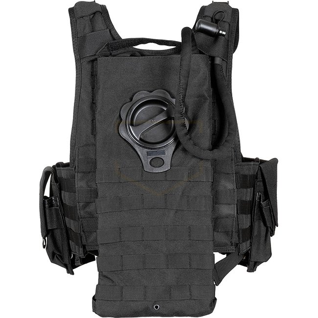 Gilet Ranger MFH - Noir : Gilet tactique avec système d'hydratation intégré, plusieurs pochettes et système de boucles Molle. Ajustement réglable, pièces détachables et fabriqué en tissu 100 % polyester.