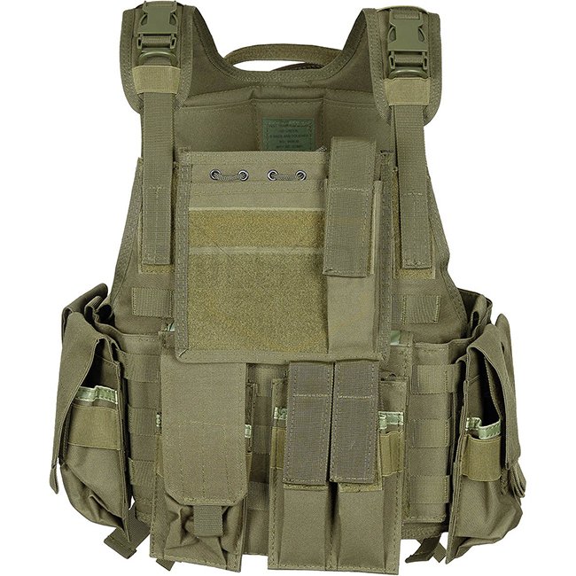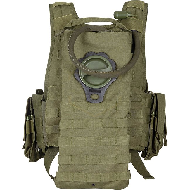 Gilet tactique avec système d'hydratation intégré, poches amovibles et caractéristiques ajustables. Idéal pour transporter des munitions et de l'équipement lors d'activités en plein air.