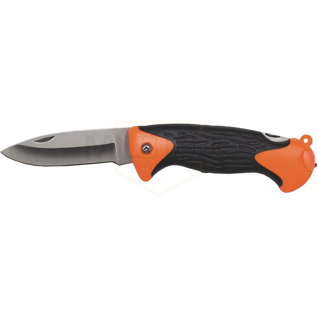 Petite boîte de rangement (12 x 1,5 x 1,5 cm) Poignée en caoutchouc antidérapant avec oeillet et brise-verre Lime et ciseaux intégrés 6 lames interchangeables: Couteau, scie, cutter, ouvre-bouteille et ouvre-cannette, écailleur, clé à molette 1 fourchette et 1 cuillère
