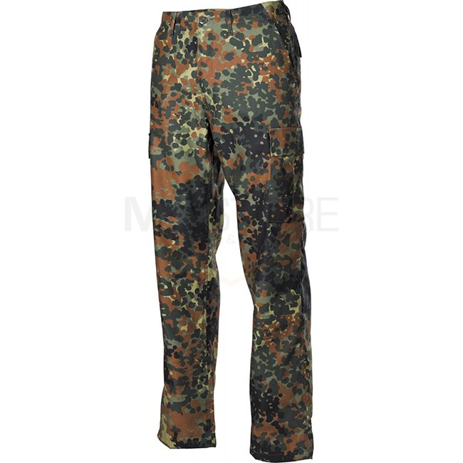 Pantalon de combat US MFH en motif Flecktarn, taille 4XL. Design classique de l'armée américaine avec zip à l'avant, poches multiples, taille ajustable et passants de ceinture extra larges. Fabriqué en mélange de 65% polyester et 35% coton. L'ourlet infér