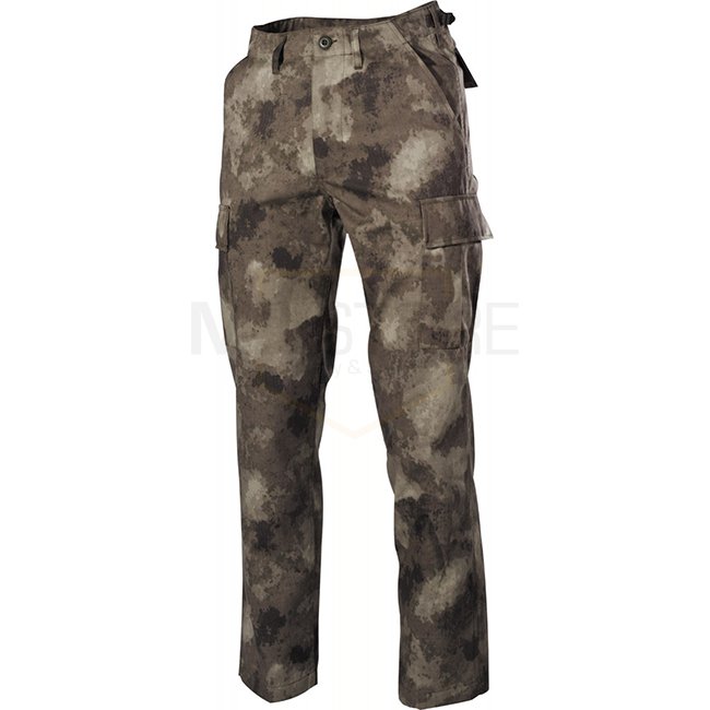 Pantalon de combat US MFH - HDT Camo - 2XL : Pantalon classique de l'armée américaine avec une taille ajustable, plusieurs poches et un ourlet à cordon de serrage. Fabriqué en 65% polyester, 35% coton.