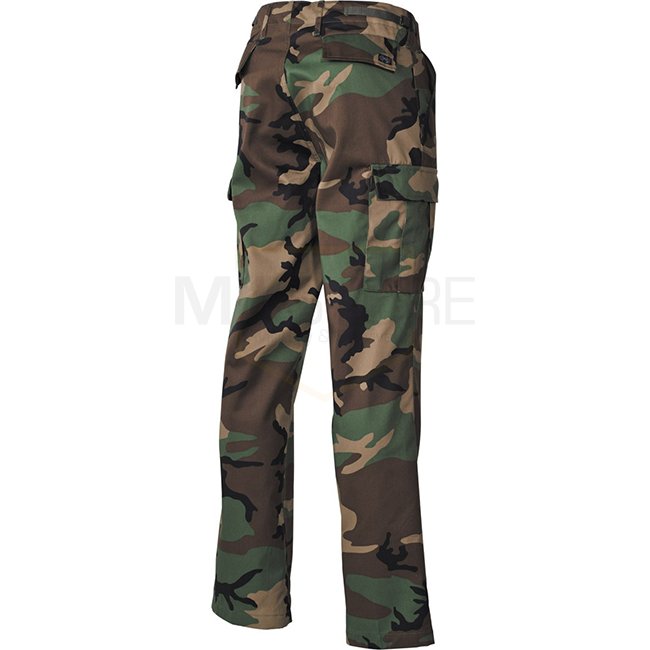Pantalons de combat MFH US en couleur Woodland, taille 7XL. Pantalons classiques BDU BATTLE DRESS UNIFORM de l'US ARMY avec fermeture éclair à l'avant, plusieurs poches, taille ajustable et ourlet inférieur à cordon de serrage. Fabriqués en 65 % polyester