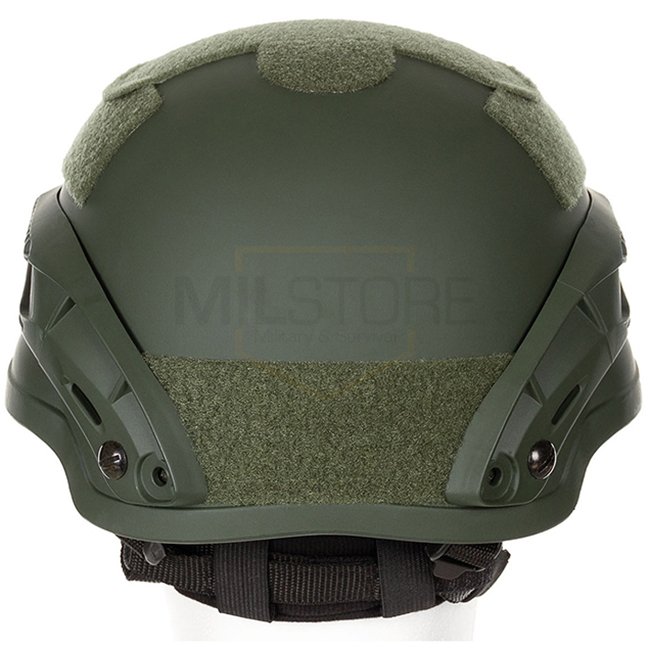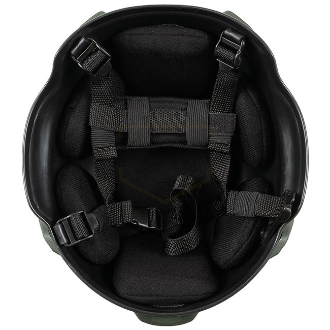 Réplique de haute qualité du célèbre casque MICH 2002 de la Seconde Guerre mondiale en olive. Dispose d'un intérieur en cuir artificiel, de plaques de montage pour vision nocturne, de rails des deux côtés et d'un matériau ABS résistant aux chocs. Parfait
