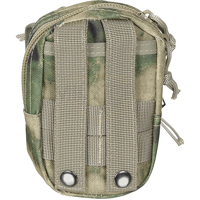 Poche utilitaire MFH fonctionnelle en HDT Camo FG avec compartiment principal, poches à glissière, poche frontale avec cordon de serrage, poche velcro, fermeture éclair, boucles d'attache Molle et matériau polyester durable. Parfait pour organiser les pet