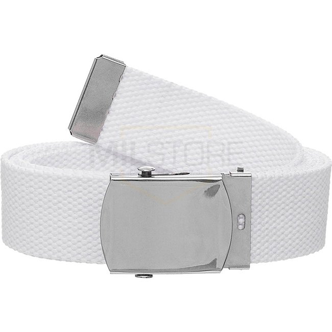 CEinture Web MFH de 30 mm de couleur blanche avec boucle en métal. Longueur réglable jusqu'à 130 cm. Fabriquée avec 80 % de coton et 20 % de polyester.