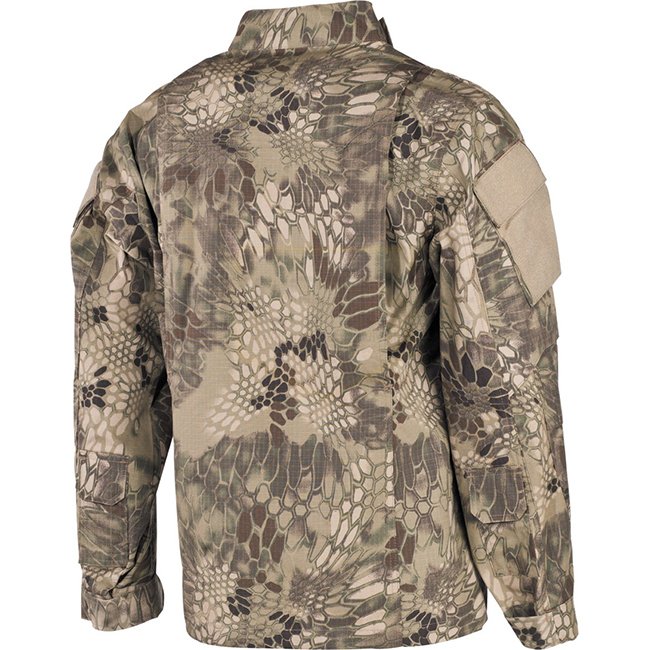 Veste de combat MFHHighDefence de haute qualité avec zip 2 sens dissimulé, plusieurs poches et panneaux en velcro, et fonctionnalités ajustables. Fabriquée en 65 % coton, 35 % nylon.