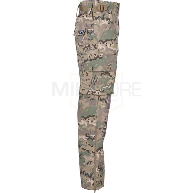 Pantalons Commando MFHHighDefence SMOCK en Ripstop - Camouflage d'Opération - 2XL - Devant pliable avec zip, 2 poches à pantalons, 2 poches latérales avec rabat et boutons, 2 poches de jambe avec rabat, boutons et œillets pour l'eau en bas de la poche, ta