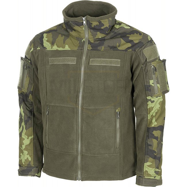 Veste en polaire MFHProfessional COMBAT en camouflage M95 CZ, taille 2XL. Fermeture éclair à l'avant, zips YKK, 2 poches pour les hanches, 2 poches pour les manches avec velcro, revêtement rip stop sur les épaules, ventilations sous les bras, bords de man