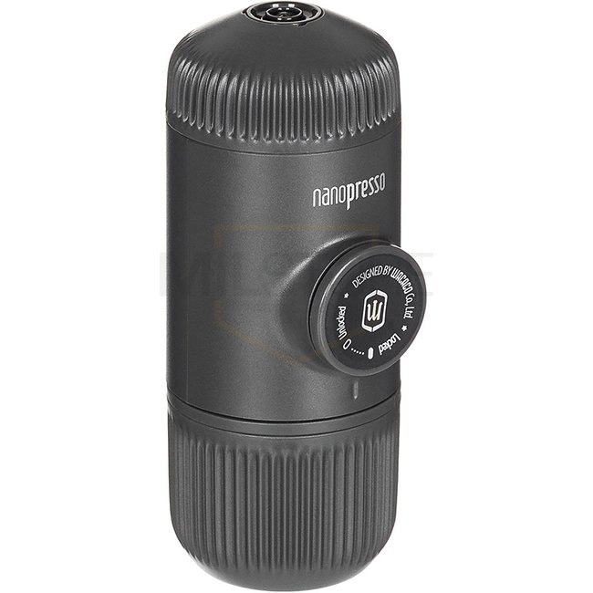 Machine à espresso NanoPresso - Gris : machine à espresso portable, fonctionnement manuel, design compact, facile à utiliser et à nettoyer. Inclut le réservoir d'eau, la pompe, le porte-filtre, le panier de filtre, la cuillère et la brosse de nettoyage. D