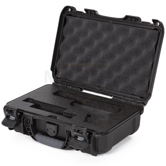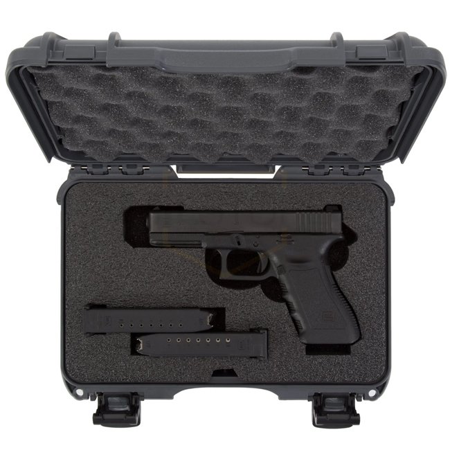 Boîtier robuste en résine NK-7 avec fermetures PowerClaw et soupape d’égalisation automatique. L’édition Glock comprend un insert en mousse à cellules fermées prédécoupé pour 1 pistolet et des chargeurs, pour un transport sûr et ordonné.