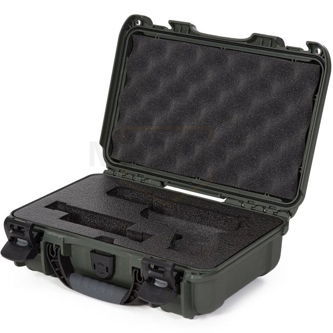 Boîtier robuste en résine NK-7 avec fermetures PowerClaw et soupape d’égalisation automatique. L’édition Glock comprend un insert en mousse à cellules fermées prédécoupé pour 1 pistolet et des chargeurs, pour un transport sûr et ordonné.