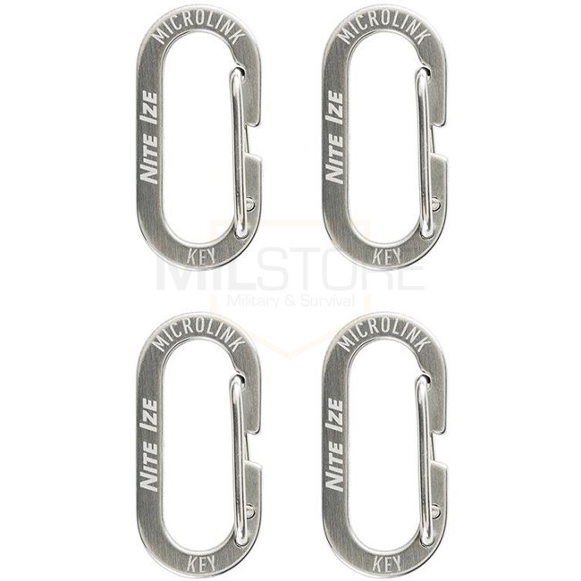 Nite Ize Microlink Carabiner 4 Pack - mousquetons en acier inoxydable compacts parfaits pour sécuriser des clés, du matériel, et plus encore. Pack de quatre avec des dimensions de 25 x 12 x 2 mm et un poids de 4 g chacun.