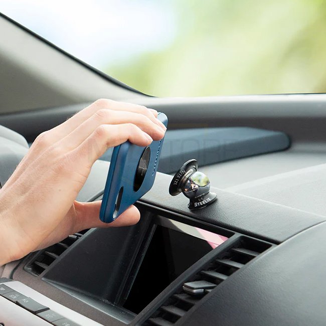 Le kit de support de tableau de bord Steelie Orbiter de Nite Ize maintient votre téléphone accessible sur le tableau de bord avec des angles de vue réglables pour une utilisation facile. Compatible avec le système de charge sans fil MagSafe® d'Apple.