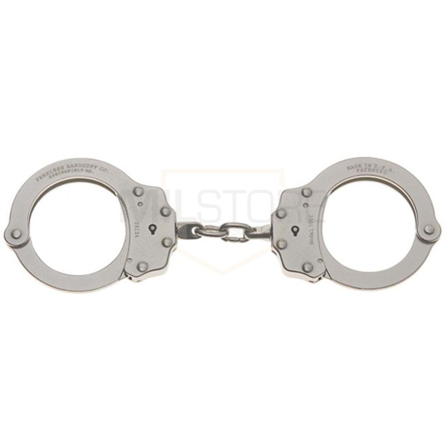 Menottes à chaîne Peerless Modèle 700C - Finition Nickel. Mécanisme de verrouillage amélioré pour une résistance au sabotage, une action plus douce et une durabilité accrue. Construction à rivet tourné, capacité de double verrouillage. Certifié NIJ 0307.0