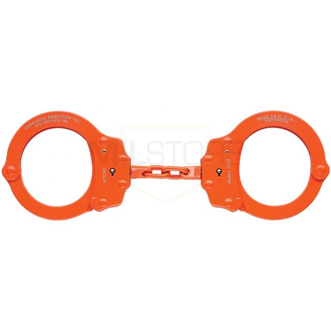 Menottes à chaîne Peerless modèle 750C - Orange. Mécanisme de verrouillage interne amélioré pour une résistance au sabotage, un crantage plus doux et une durabilité accrue. Certifié par l'Institut National de Justice 0307.01. Revêtement en polyuréthane él