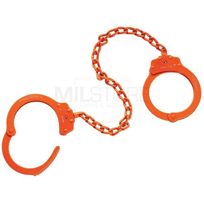Le Peerless Modèle 753C 15 Menotte pour les jambes en Orange présente une construction tout acier avec des rivets emboutis, répondant ou dépassant les normes NIJ. Avec une chaîne de 38 cm pour limiter l'amplitude des mouvements, cette menotte pour les jam