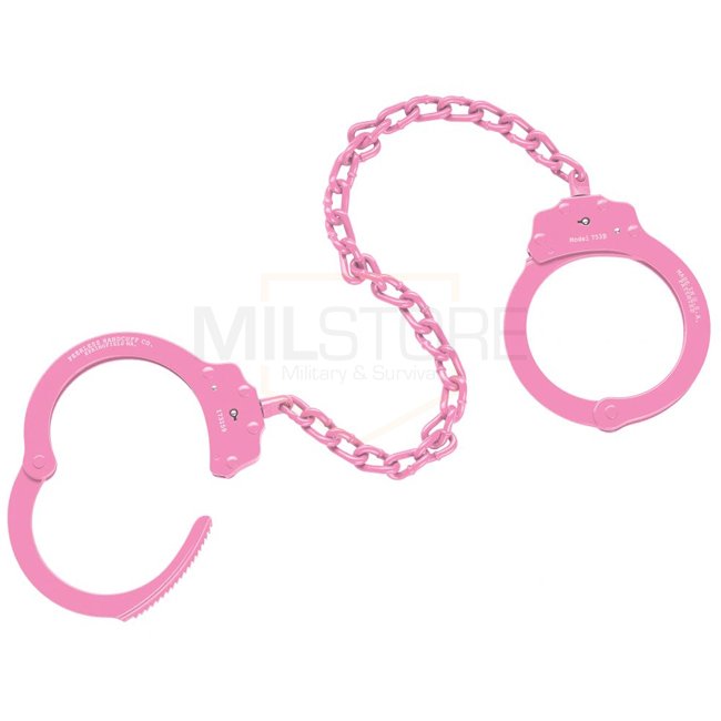 Le modèle Peerless 753C 15 Leg Iron de couleur rose possède une construction entièrement en acier pour plus de durabilité. Conforme aux normes NIJ, il possède une chaîne de 38 cm pour un mouvement limité, un mécanisme de verrouillage amélioré, et une gara
