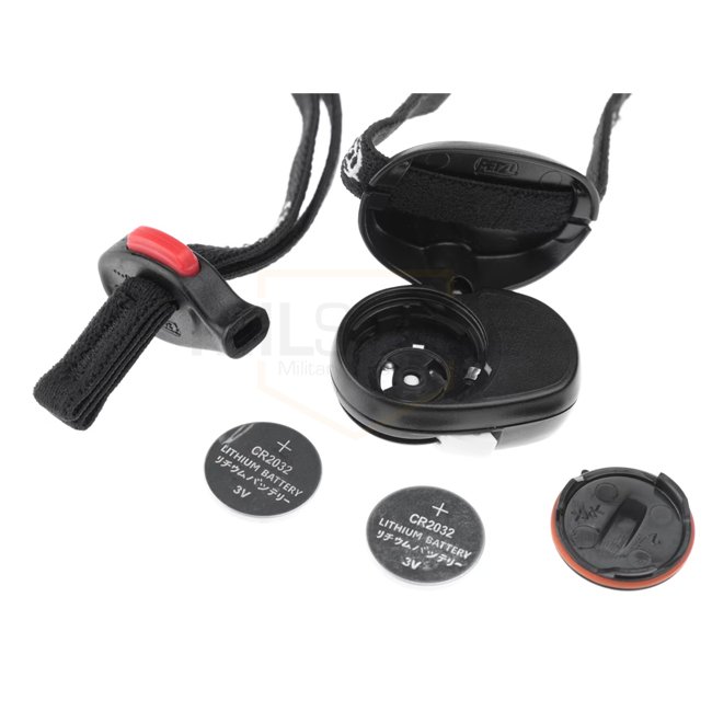 Petzl e+LITE® - Lampe frontale ultra-compacte délivrant 40 lumens avec des modes de lumière blanche et rouge, étanche, inclut des piles CR 2032 et un sifflet intégré.