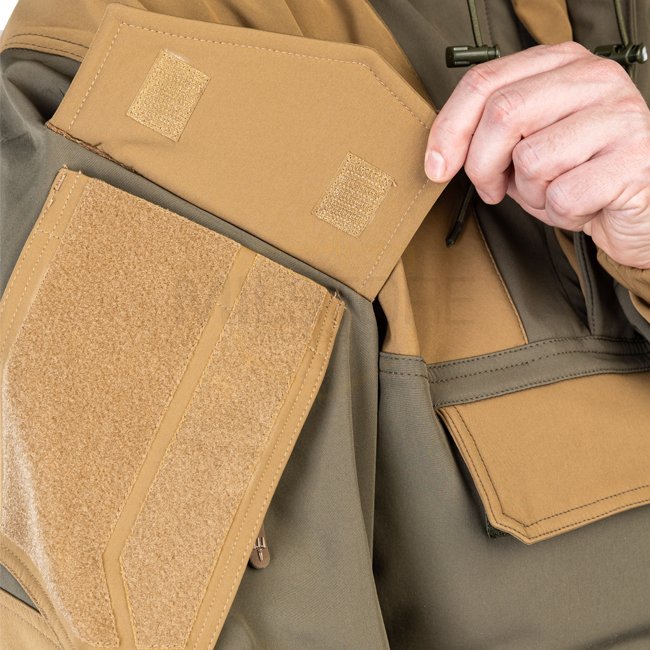 • Surfaces auto-agrippantes dans le style PITCHFORK sur les poches des bras (110 x 200 mm)