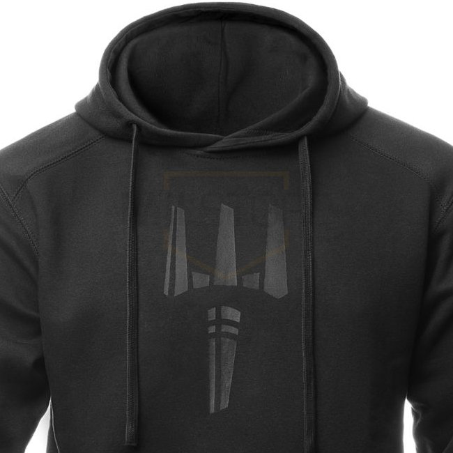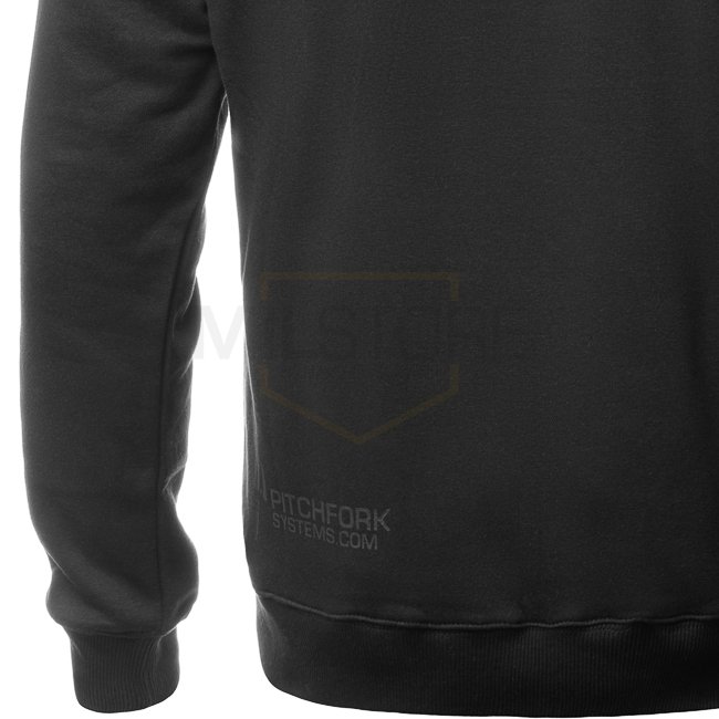 Sweat à capuche décontracté Pitchfork, impression noir - Noir - M : Sweat à capuche noir à coupe ample avec un grand trident centré sur la poitrine, petit logo PFS à l'arrière. Mélange coton-polyester 70/30 pour la chaleur, informations sur le produit imp