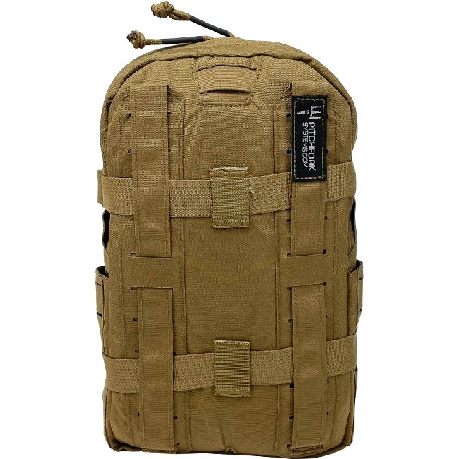 Pitchfork Compact Hydration Pack Combo - Coyote : Le Compact Hydration Pack dopé, associé à une poche utilitaire verticale moyenne et des sangles de compression. Design slim qui se transforme en un Mini Assault Pack s'adaptant parfaitement aux porte-plaqu
