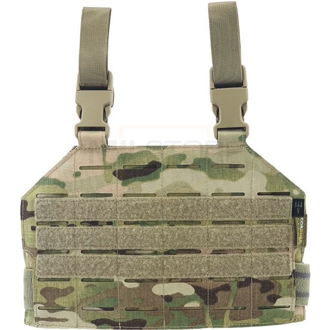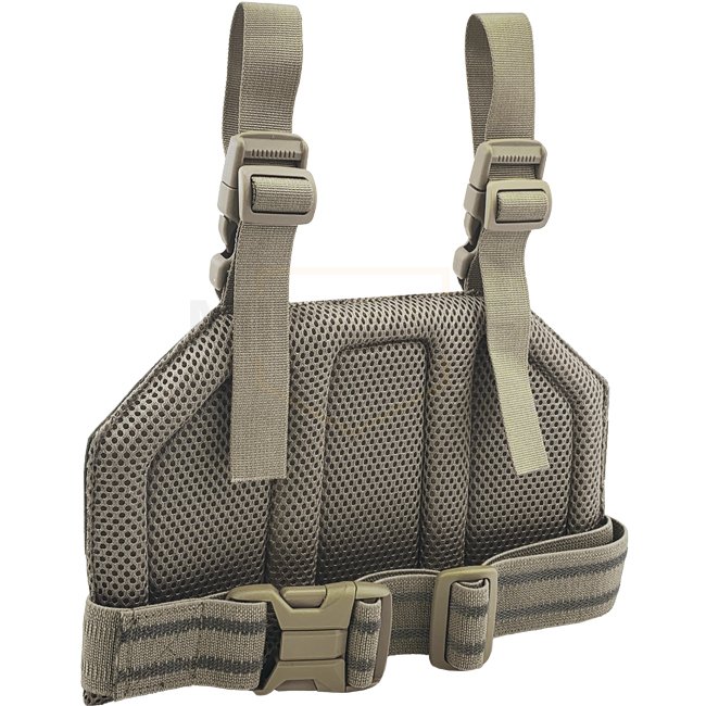 La plate-forme Drop Leg est conçue pour une méthode de transport dite "mid-ride". Contrairement aux plateformes de cuisse classiques, il se porte juste au-dessous des hanches et se maintient autour de la cuisse avec une seule sangle. Il est livré avec une boucle de sécurité à trois points et une bande caoutchoutée unilatérale pour une prise parfaite. Vers le haut, le panneau est attaché à la ceinture au moyen de deux sangles ajustables en longueur. L'intérieur est rembourré avec un filet doux, qui repose à plat autour de la jambe en raison de sa forme ergonomique. L’extérieur comprend une surface LaserCut MOLLE ainsi que trois bandes de velcro, permettant à l’utilisateur d’installer des poches ainsi qu’un étui.