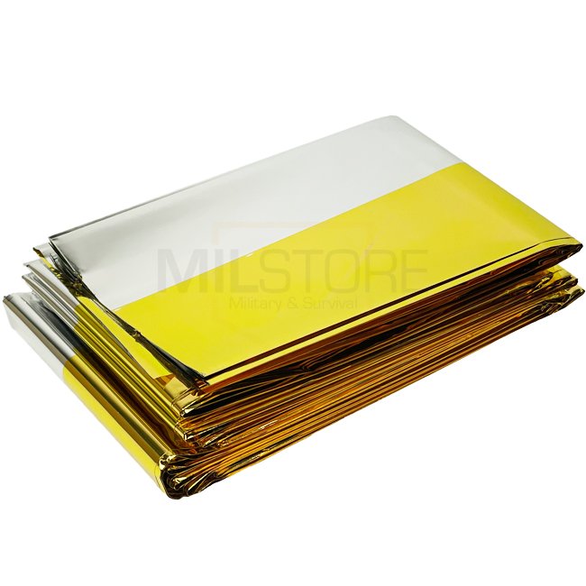 Couverture d'urgence à fourche - Couverture multifonctionnelle pour protection contre le froid, l'humidité, le vent et la chaleur. Peut également être utilisée comme sous-couche pour un sac de couchage. Côté argent à l'intérieur pour la protection contre