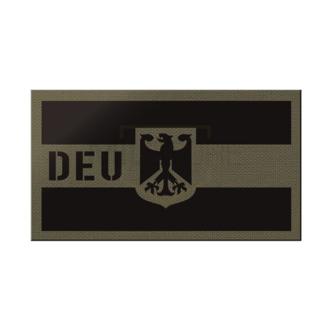 Pitchfork Allemagne Patch IR imprimé - Vert Ranger. Avant : feuille IR, Arrière : surface à crochet. Dimensions : 90 x 50 mm.